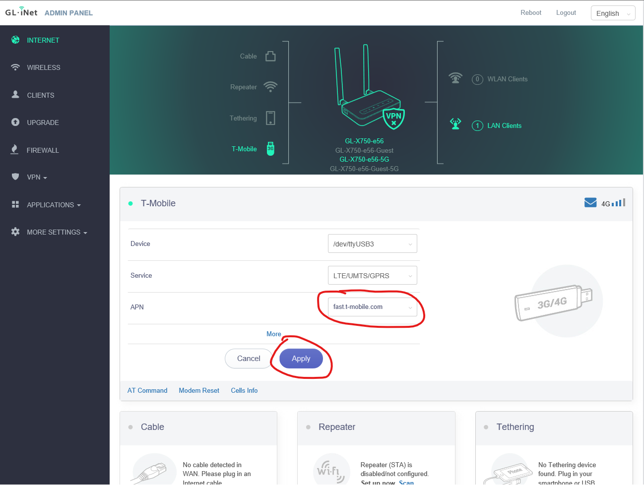 6. Click "Apply" and wait 3-5 minutes for your router to reconnect.